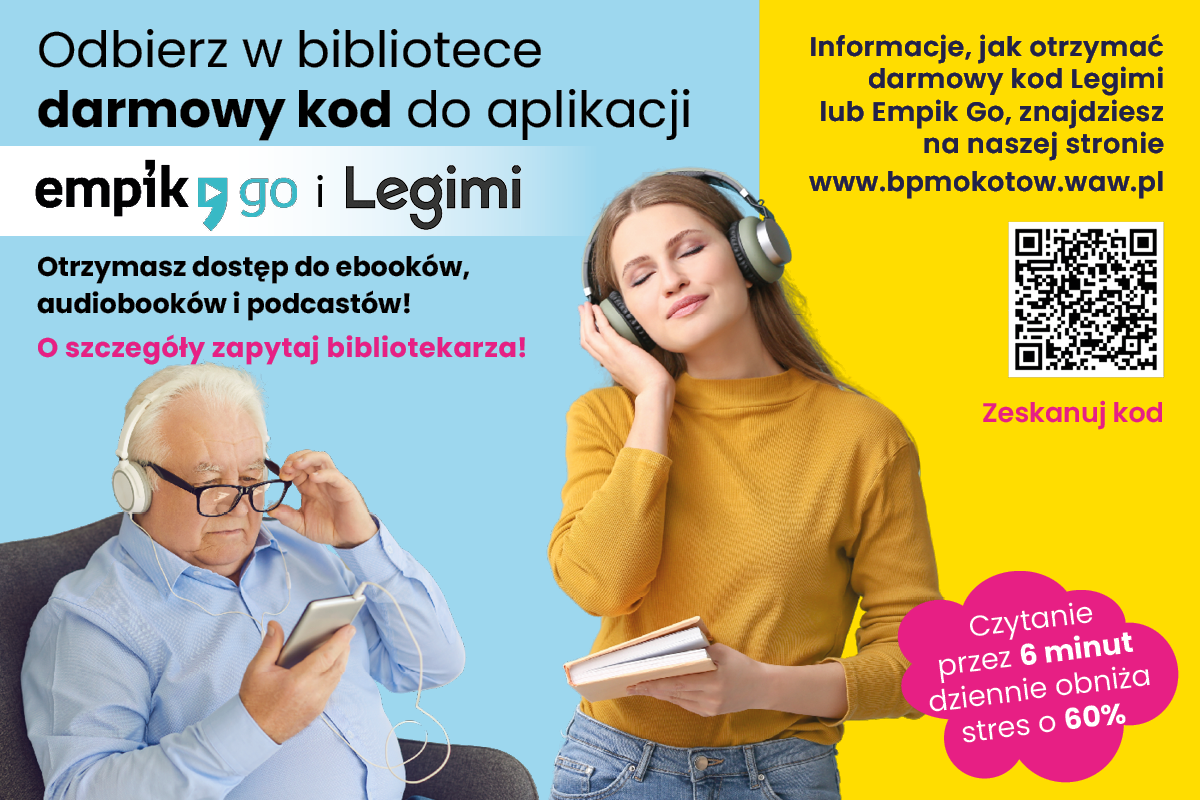 Biblioteka Publiczna im. Z. Łazarskiego kontynuuje dystrybucję zakupionych przez siebie kodów do serwisu Legimi i Empik Go. Wraz z wejściem w życie nowego regulaminu zmianie ulega sposób wydawania kodów.